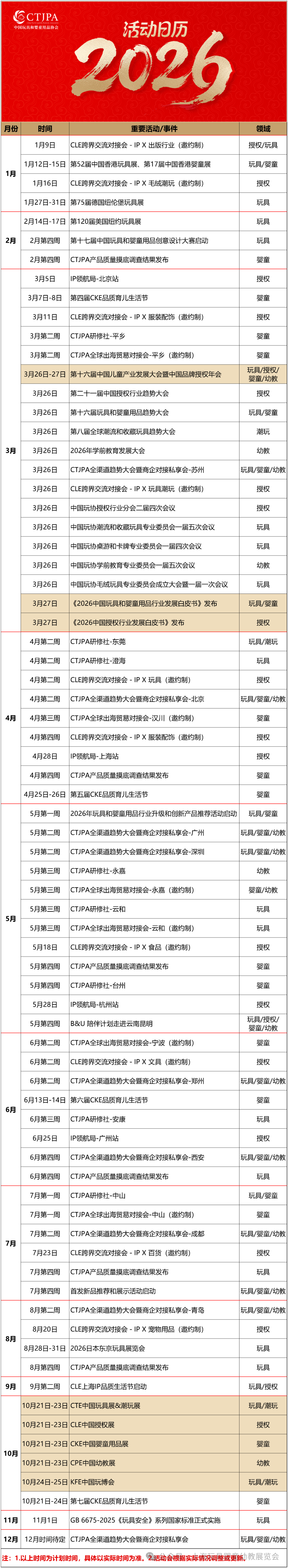 中国玩协送您一份“2026年活动日历”